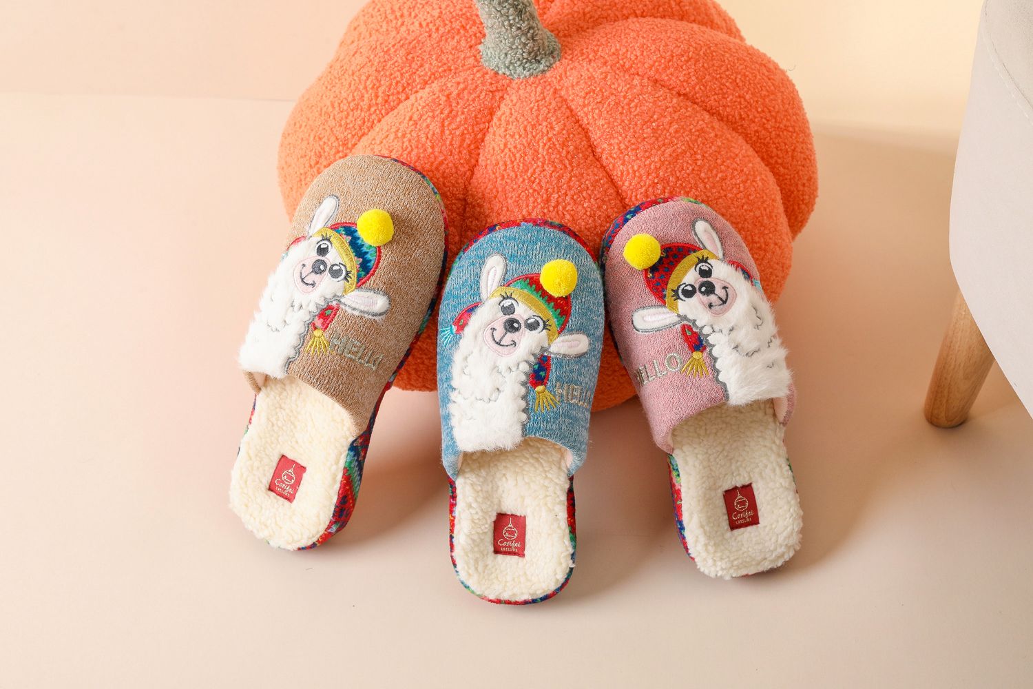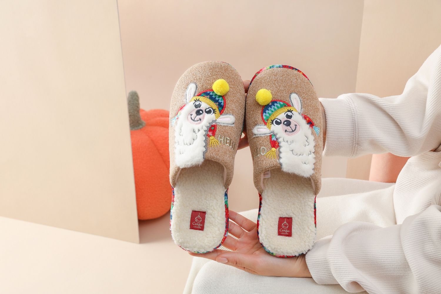 Zapatillas de interior de punto con bordado personalizado de alpaca, fabricante de zapatillas anatómicas ODM y OEM