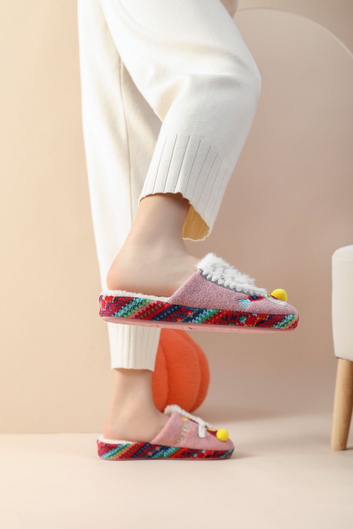Zapatilla anatómica de invierno tejida con bordado de alpaca