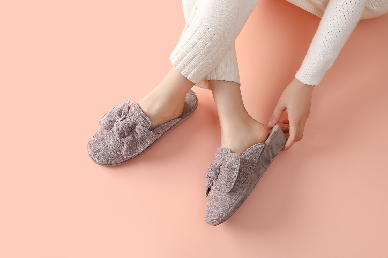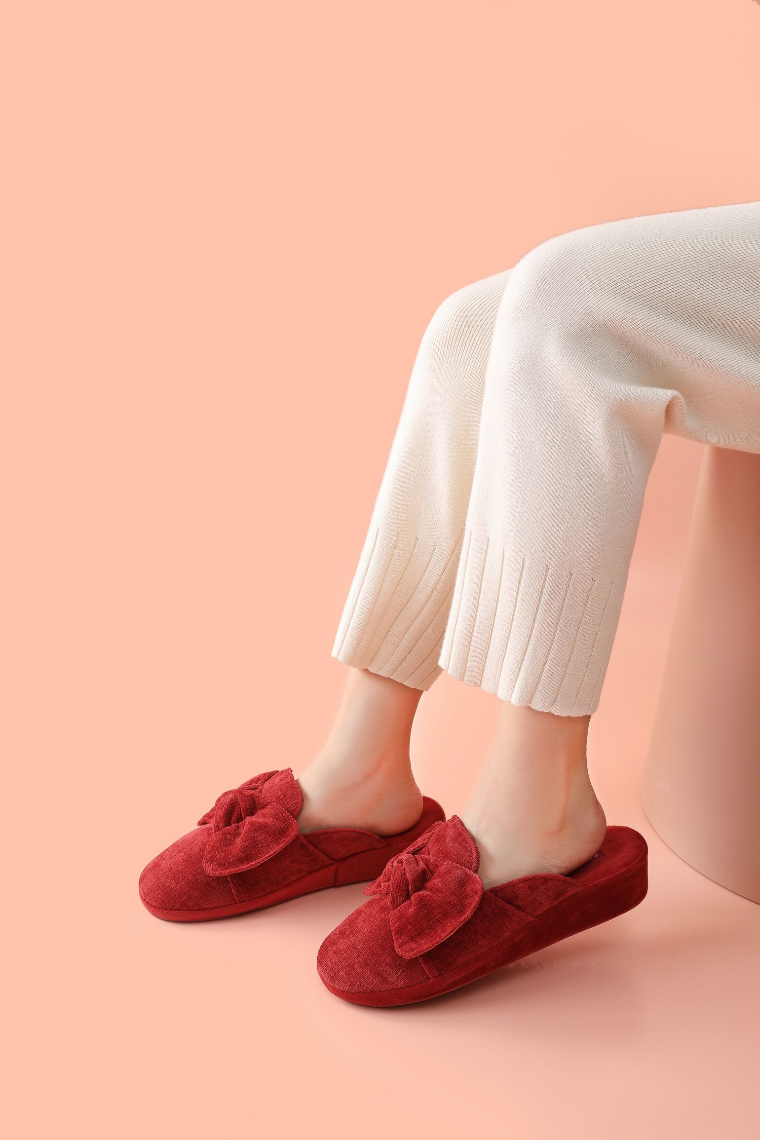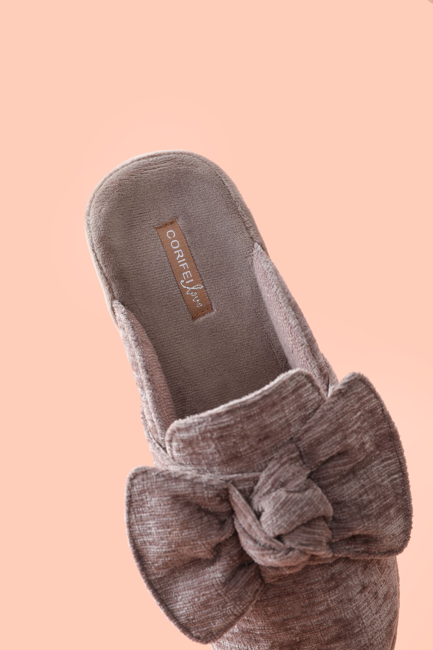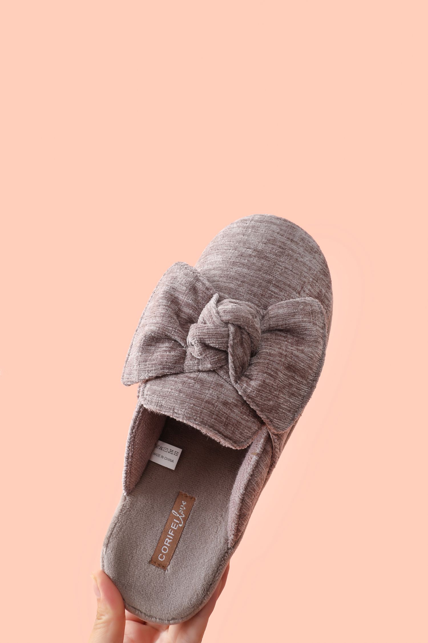 Pantuflas de invierno con lazo hecho a mano de tela de chenilla