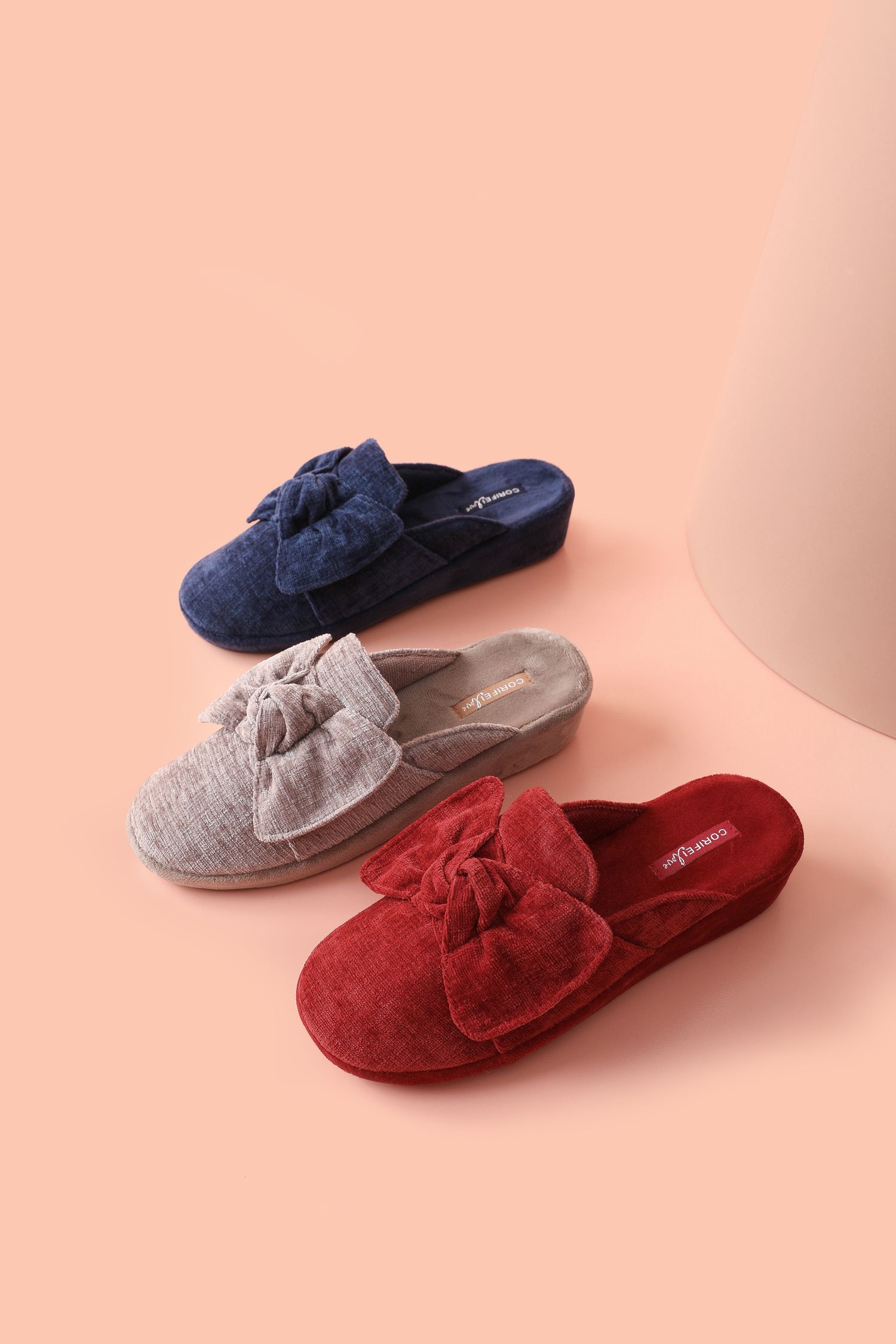 Zapatillas de invierno cálidas y elegantes con lazo hecho a mano de tela de chenilla estilo Lady Edge