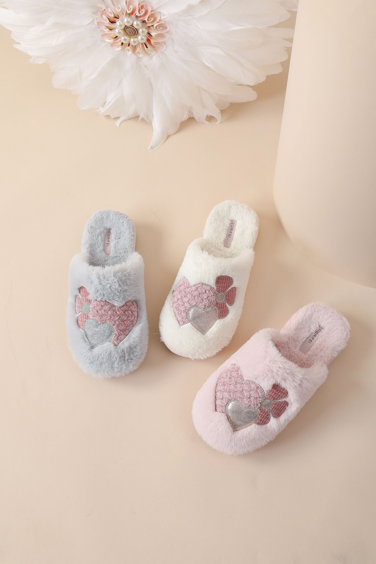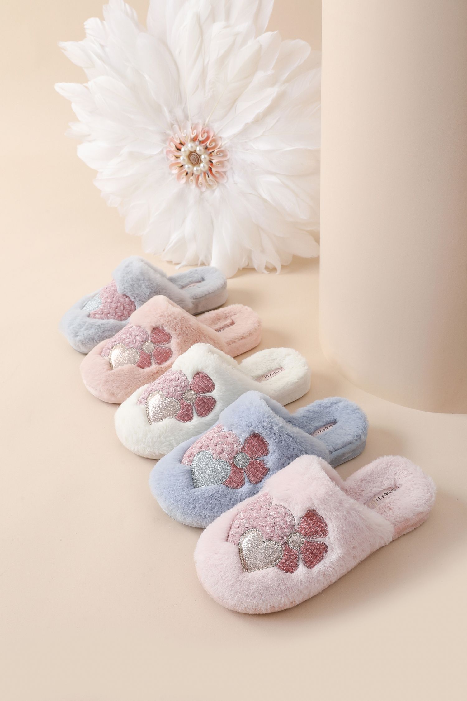Zapatilla interior de invierno de tela esponjosa