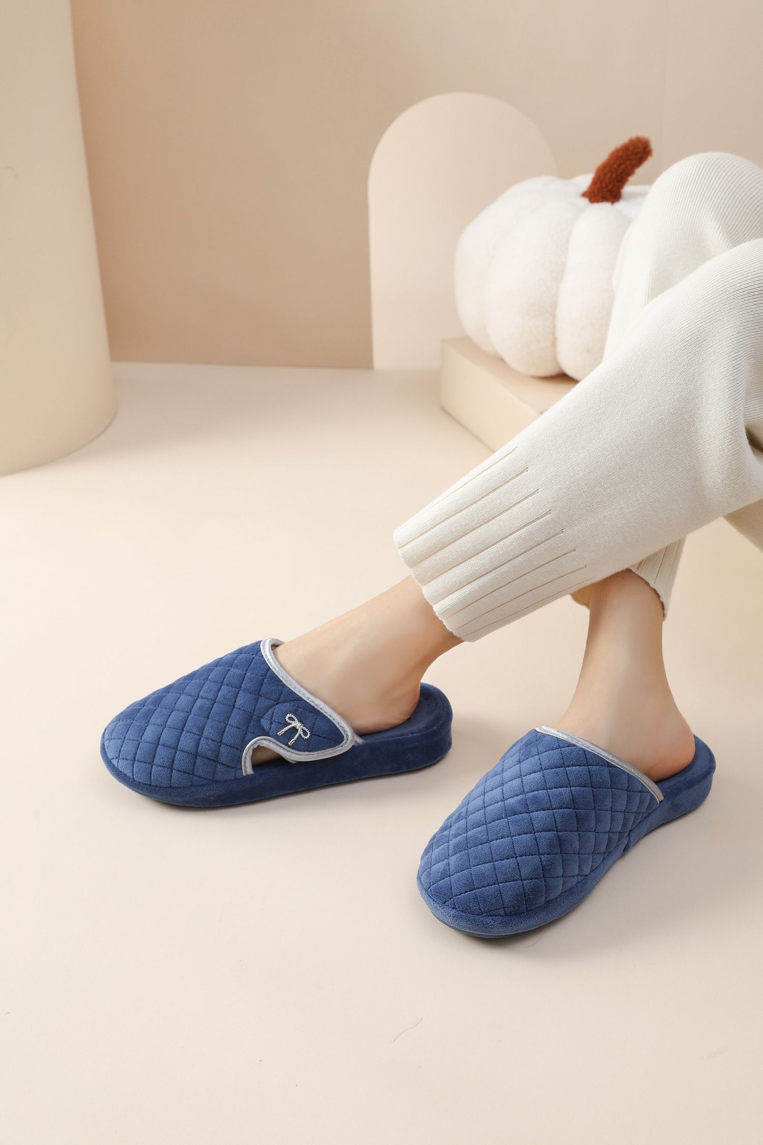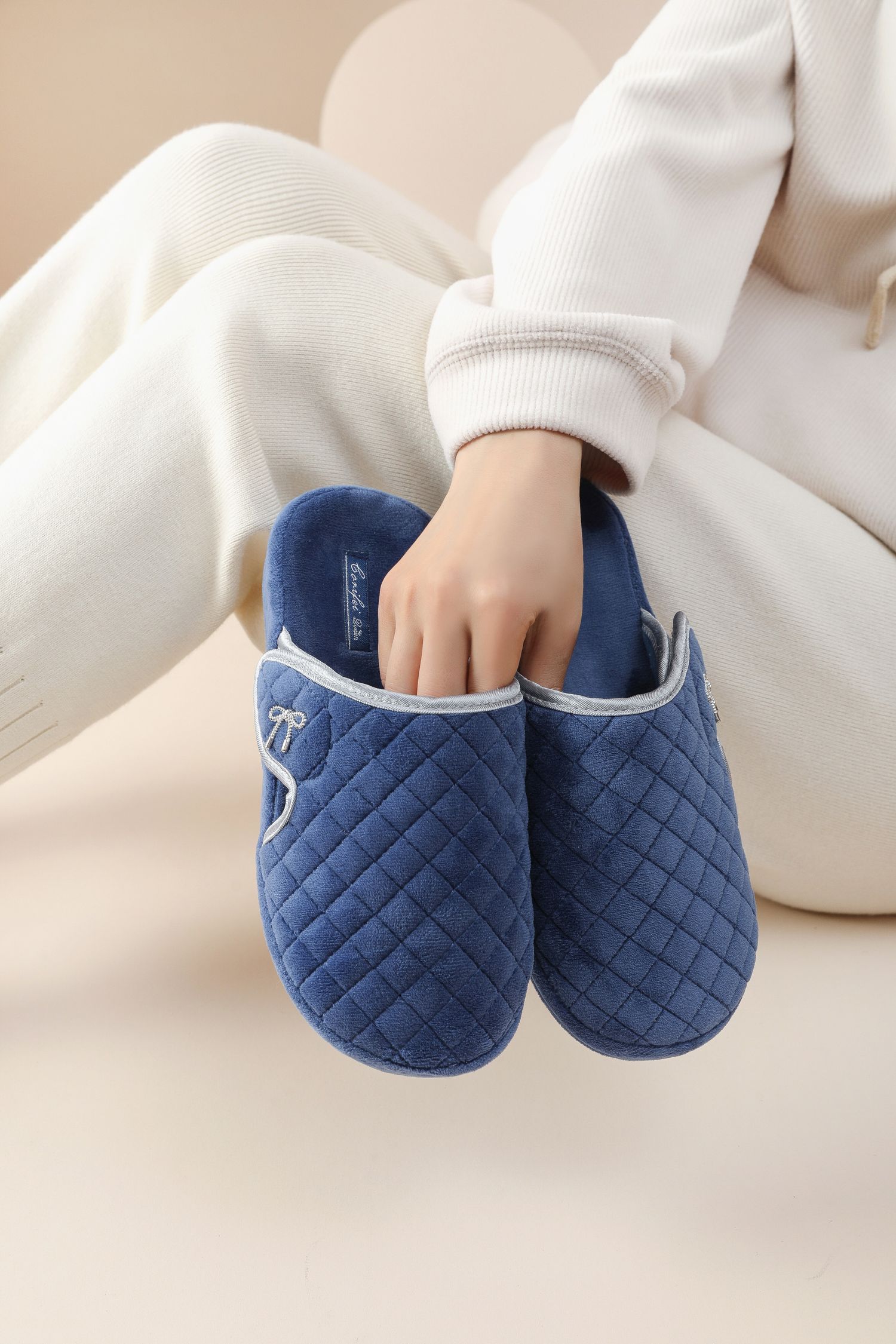 Zapatilla de invierno con costuras acolchadas de tela de felpa