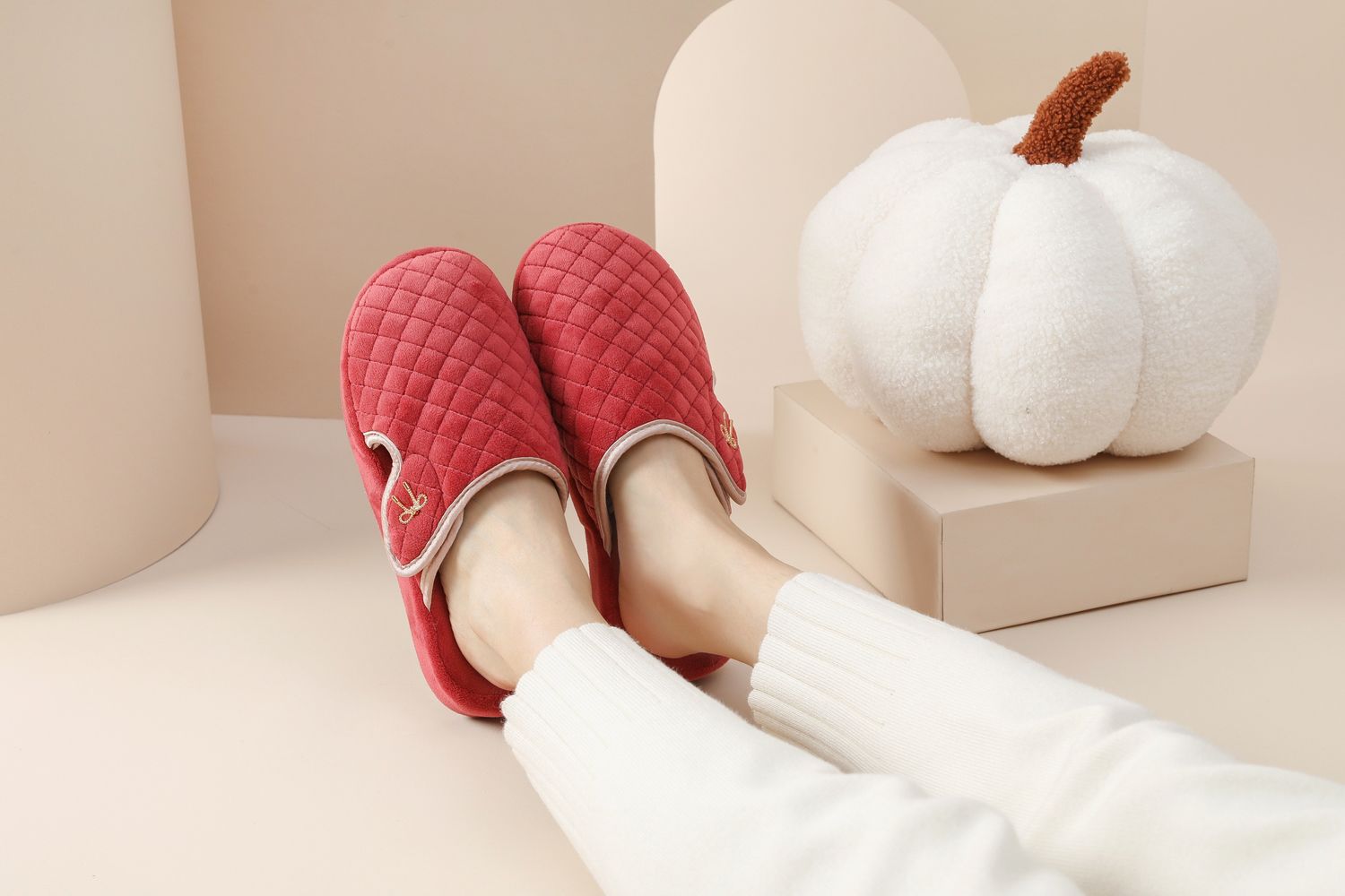Zapatilla interior de invierno anatómica con costuras acolchadas de tela de felpa suave para mujer